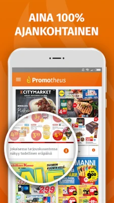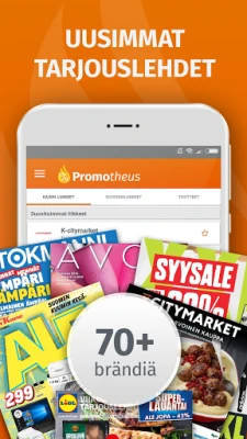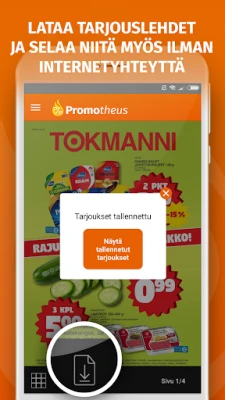Oletko kyllästynyt etsimään tarjouslehtiä tai jäämään paitsi parhaista alennuksista? Promotheus-sovelluksen avulla säästät aikaa ja rahaa, sillä kaikki myymälöiden tuoreimmat tarjoukset ja esitteet kulkevat aina mukanasi. Saat välittömän ilmoituksen, kun esimerkiksi Tokmannin tai Tuurin uusi viikkolehti ilmestyy, varmistaen, ettet koskaan ohita suosikkituotteidesi huipputarjouksia. Olipa etsinnässäsi paikallisen K-marketin tai S-marketin edullisimmat löydöt, Promotheus kokoaa yli 5 000 liikkeen ajankohtaiset tarjoukset kätevästi yhteen paikkaan, auttaen sinua löytämään parhaat diilit helposti ja nopeasti.
