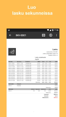 Timesheetin avulla työaikasi pysyy järjestyksessä tunnisteiden avulla, ja selkeät graafiset analyysit tarjoavat syvällisen kuvan työskentelytottumuksistasi ja tuottavuudestasi. Kun on aika jakaa tietoja tai laskuttaa, Timesheet luo ammattimaisia raportteja Excel-, CSV- tai HTML-muodossa, jotka ovat helppoja toimittaa eteenpäin. Lisäksi voit luoda ammattimaisia PDF-laskuja suoraan asiakkaillesi, mikä virtaviivaistaa laskutusprosessia merkittävästi. Timesheet on täydellinen kumppani aikasi hallintaan ja tulojesi optimointiin, varmistaen, että saat oikean korvauksen työstäsi nopeasti ja tehokkaasti.