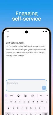 Workday-sovellus tarjoaa suojatun mobiilipääsyn työnhallintasovelluksiin. Työntekijät voivat helposti tarkistaa palkan, pyytää lomaa, syöttää työaikaa ja kuluja. Esimiehet hyväksyvät pyynnöt vaivattomasti. Pysy ajan tasalla tärkeistä ilmoituksista ja toimi suoraan sovelluksessa.